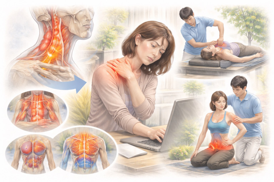 「マッサージに通っているのに、またすぐ戻る」 そんな肩こりに悩んでいませんか? 肩こりは、単に筋肉が硬いから起きているわけではありません。 よくあるのが、長時間のデスクワークや前かがみ姿勢によって、 首や肩の筋肉が働き続けるタイプ。筋肉が緊張し、血流が悪くなり、 酸素不足の状態になって重だるさや痛みが出ます。 しかし、それだけではありません。 実は「頭を支える仕組み」が崩れているケースが多いのです。 頭の重さは体重の約10%。これを支えているのは、 僧帽筋や胸鎖乳突筋といった表面の筋肉だけではありません。 本来は、 ・舌骨まわりの筋肉 ・首のインナーマッスル ・肩甲骨や体幹を支持する筋肉 ・横隔膜や腹部の深層筋 これらが協調して働くことで、首や肩に負担が集中しない仕組みになっています。 ところが、 ・噛む回数が少ない ・顎を引く力が弱い ・姿勢が崩れている ・呼吸が浅い こうした状態が続くと、インナーマッスルがうまく働かず、 代わりに首や肩のアウターマッスルが頑張り続けます。その結果、慢性的な肩こりが生まれます。 特に呼吸が胸式になっている方は、呼吸のたびに首や肩の筋肉を使っています。 横隔膜や腹部の深層筋が働いていないと、肩は休む時間がありません。 つまり、肩を揉むだけでは、 ・舌骨まわりの筋肉 ・首のインナーマッスル ・肩甲骨や体幹を支持する筋肉 ・横隔膜や腹部の深層筋 は変わりません。 マッサージは、疲労した筋肉をケアするという意味ではとても良いものです。 ただ、それは対処であって、根本の改善ではない場合があります。 もし肩こりが、 ・仕事の集中力を下げている ・趣味を楽しめない ・頭痛につながっている こうした人生の質に影響しているなら、支える仕組みから見直す必要があります。 潤整骨院では、肩だけを見ません。 姿勢、呼吸、顎や舌骨の働き、首の深層筋、体幹の安定性まで評価し、 「なぜ首肩が頑張りすぎているのか」を明確にします。 ご褒美としてのマッサージも一つの価値観です。 しかし、繰り返す肩こりを本気で変えたいなら、 対処ではなく構造と機能から整えるという選択肢があります。 松戸市で肩こりに悩み、マッサージで良くならない方。 肩を揉む前に、支える仕組みを整えてみませんか。
